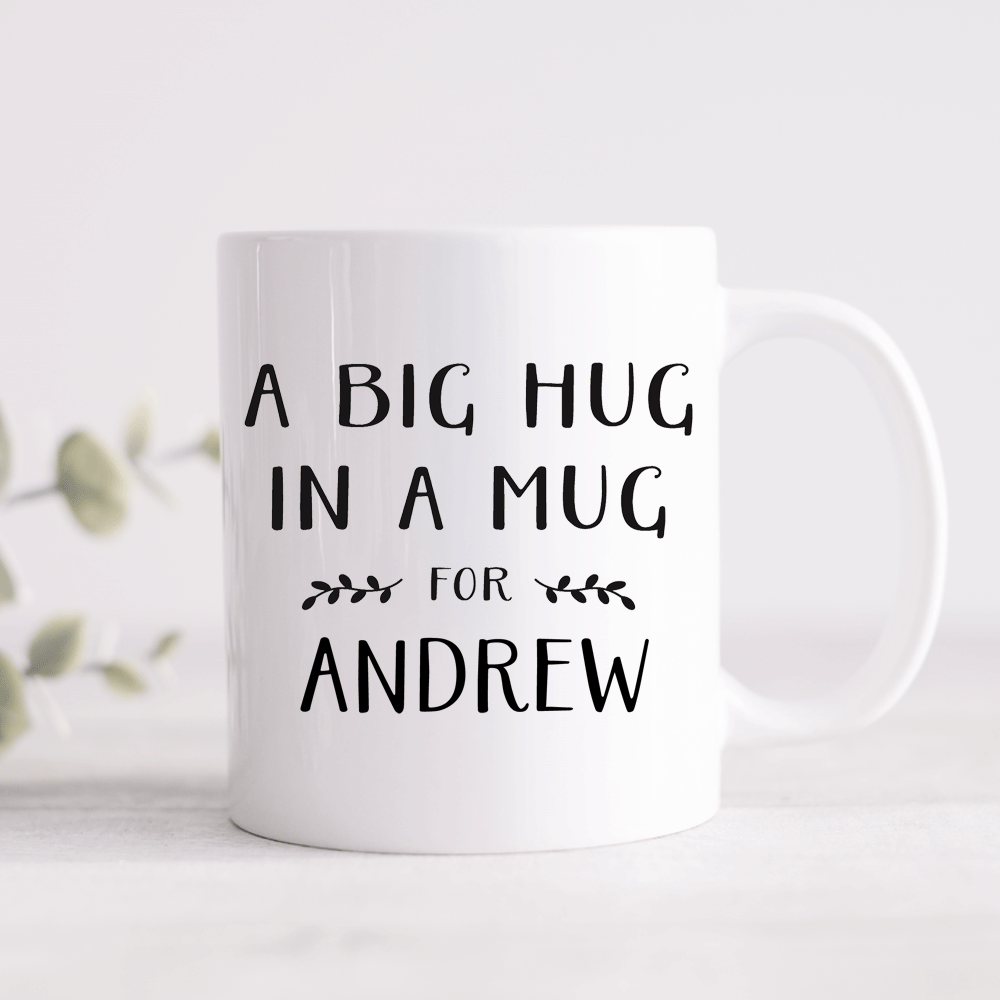 ‘A Big Hug In A Mug For …’ personalised mug. This ‘big hug in a mug’ can be personalised with any name of your choice.