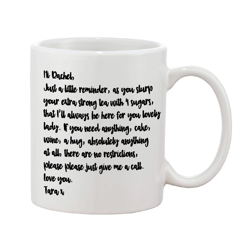 This is the mug for a longer message. Get as creative as you like with this sweet and simple personalised message mug. Choose between a hand writing style or typewriter font.