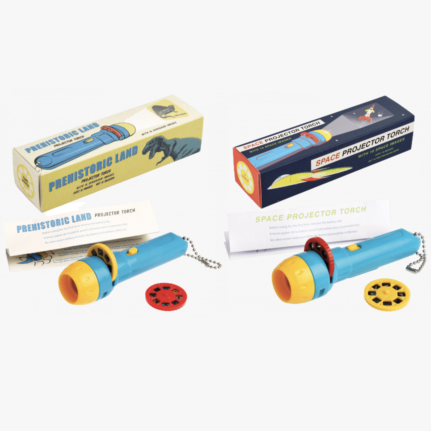 Dim the lights and discover your favourite image with these projector torches. Choose from Space or Dinosaur.