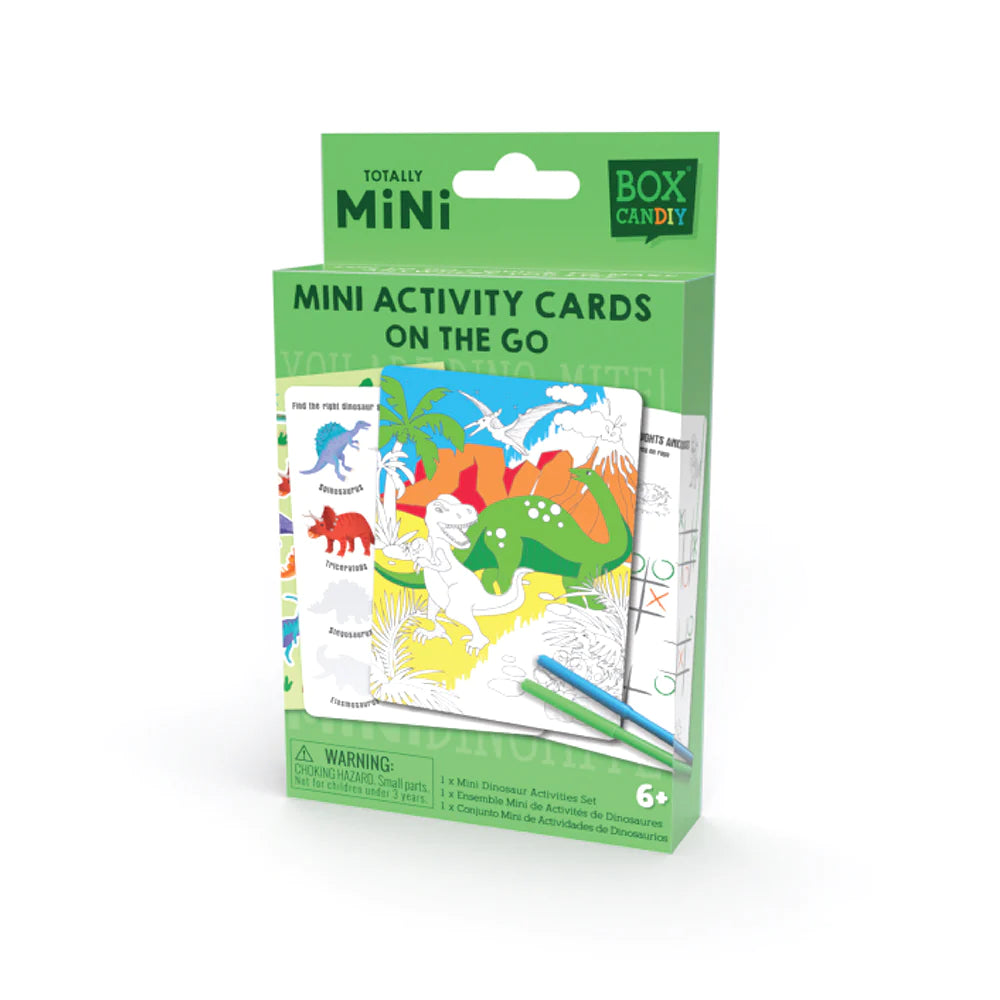 Contents: 16 mini dinosaur activity cards(12 x 9 cm), 6 mini felt tips pens and a sticker sheet.