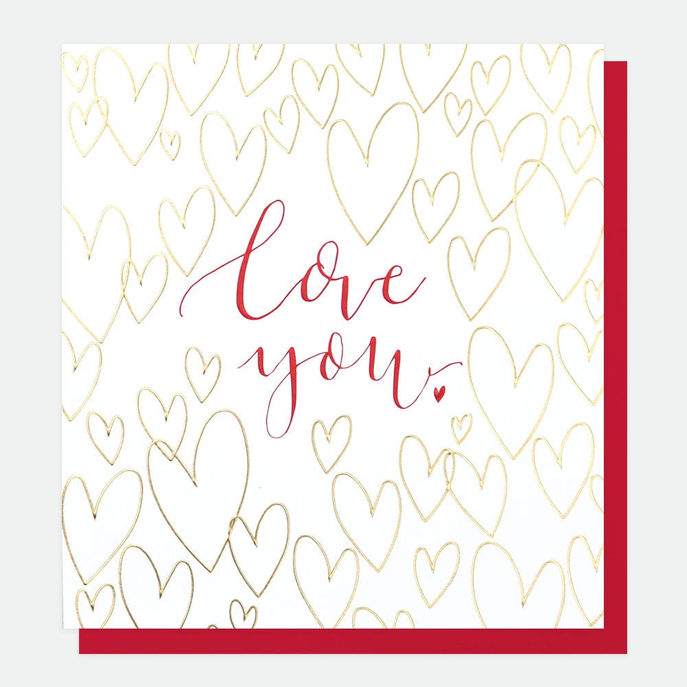 ‘Love You’ card with gold hearts.