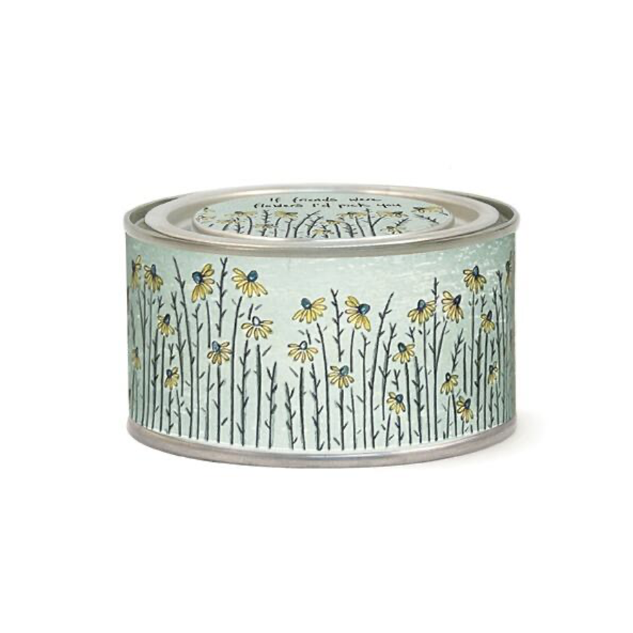 Let your bestie know how you feel with this ‘If friends were flowers I’d pick you’ candle tin, wrapped in a pretty turquiose paper with meadow flowers and scented with warm baked apple.
