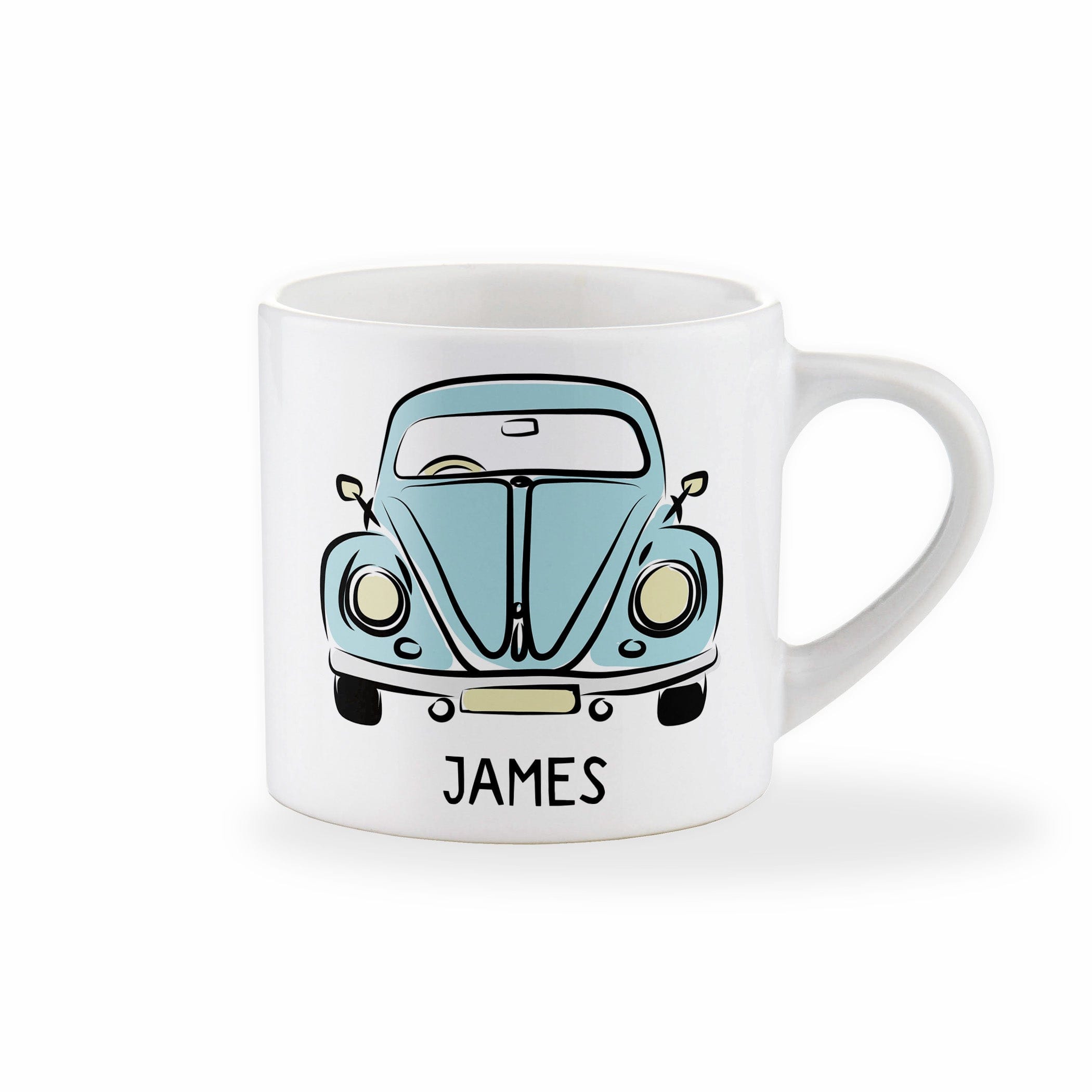 A mug for car fans – this cute bug style car mug can be personalised with any name or nickname of your choice.
