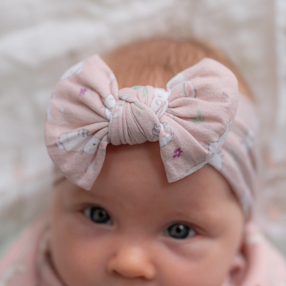 Pink Bunnies Baby Top Bow Headband Turban