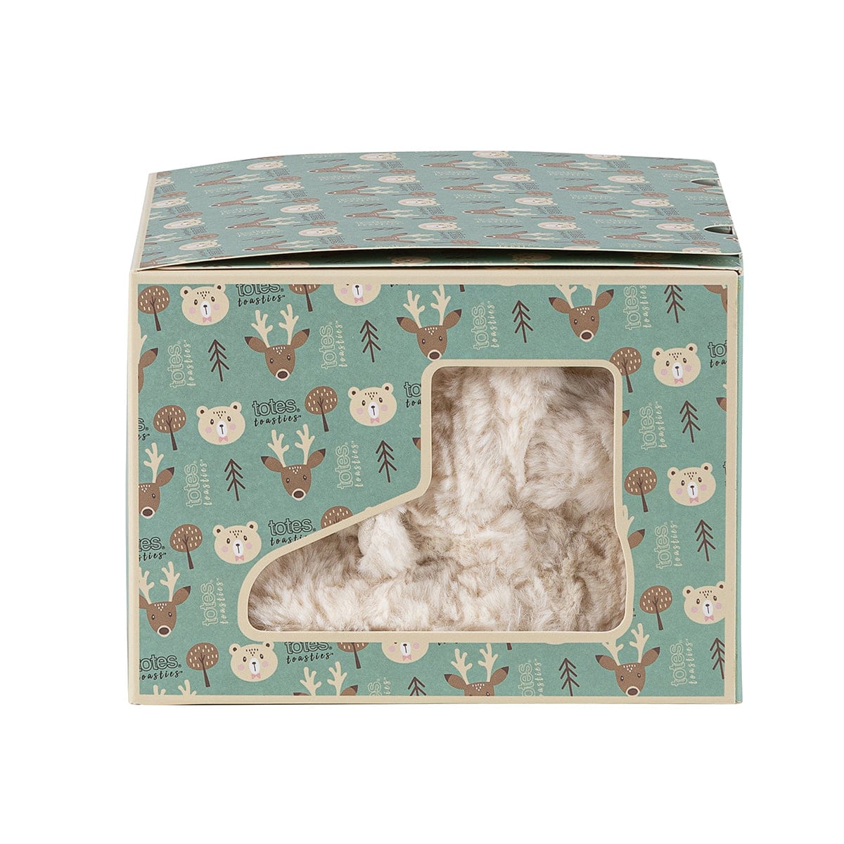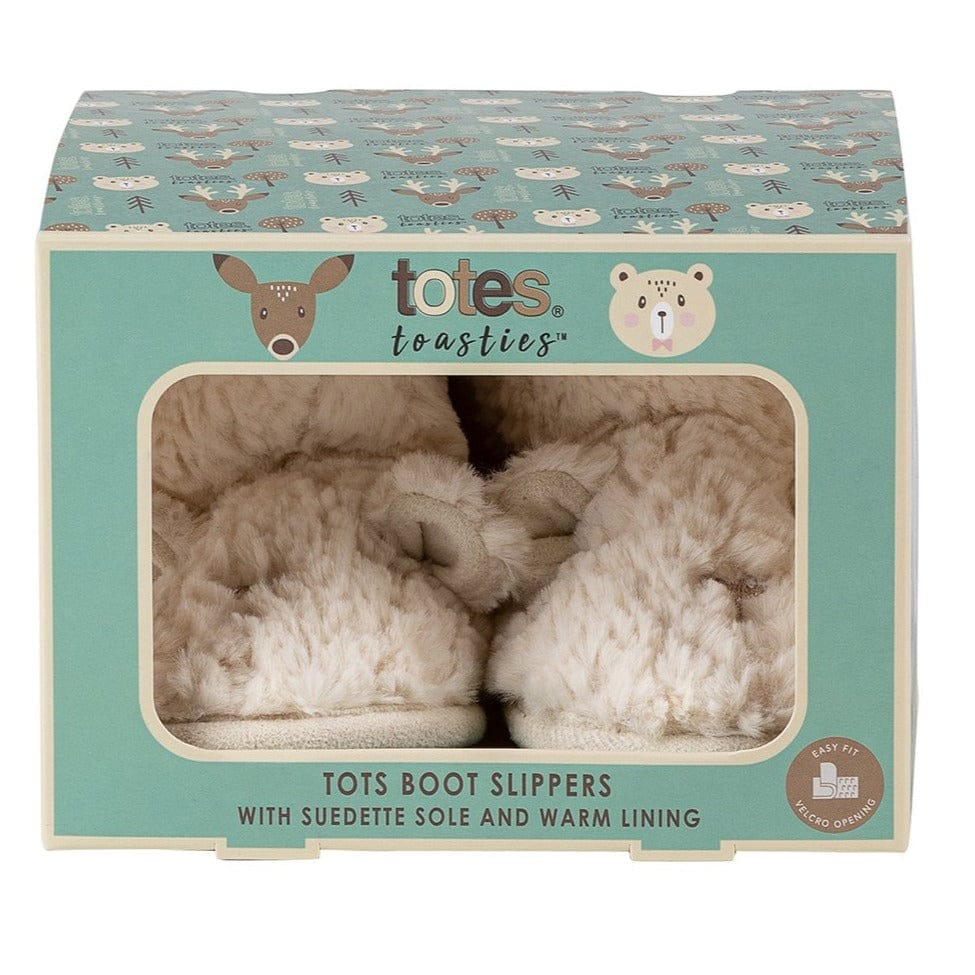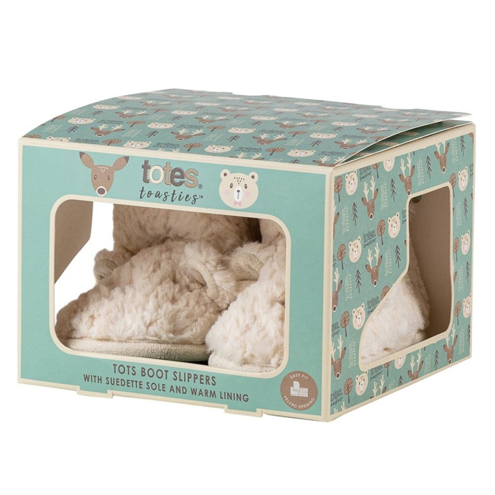 Presented in a sweet gift box, these sweet and fluffy booties from Totes in a cute polar bear design have a soft, warm lining to keep toes and feet cosy and warm. The suedette soles help keep little ones walking steadily, and the easy fit velcro opening makes them easy to put on.