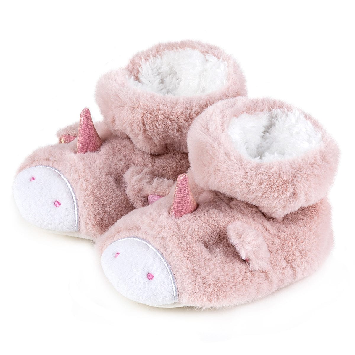 These fluffy booties from Totes in a cute pink unicorn design have a soft, warm lining to keep toes and feet cosy and warm.