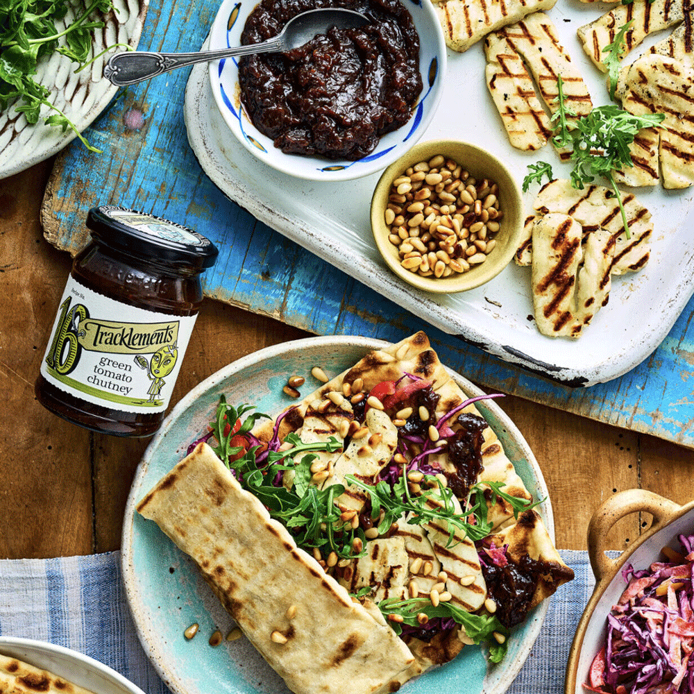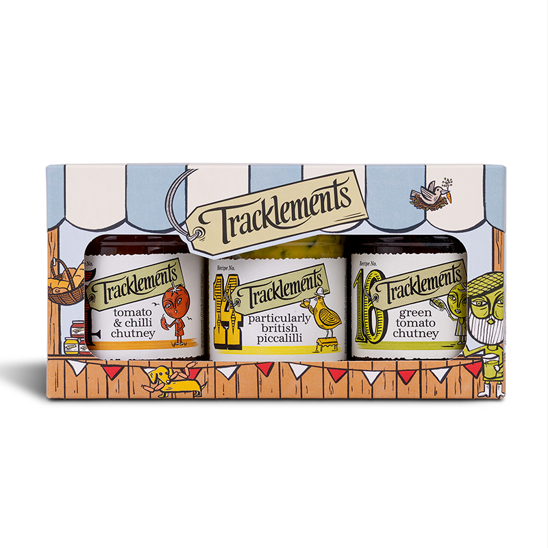 Green Tomato Chutney: Green Tomatoes (20%), Muscovado Sugar, Bramley Apples, Dates, Tomatoes, Cider Vinegar, Raw Cane Sugar, Garlic, Sea Salt, Chillies, Fenugreek, Coriander, Cumin, Black Pepper, Mustard Seed, Cardamom.